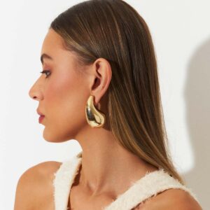 Argola Dois Em Um Lisa Com Elo Retangular Banhado A Ouro
