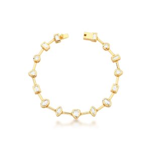 Pulseira Riviera Faca Zircônia Banhado A Ouro 16Cm