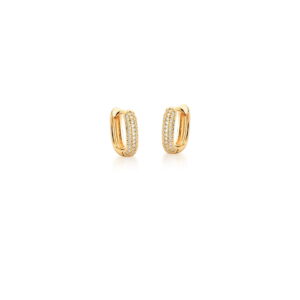 Argola Quadrada Média Cravejado Em Zircônia Banhado A Ouro