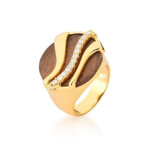Anel Madeira Cravejado Em Zircônia Banhado A Ouro