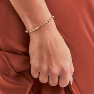 Essa peça remete a elegância e sofisticação, ela é perfeita para se ter, pois combina com diferentes looks e proporciona um visual moderno e elegante. Peso: 16,70g. Acabamento: Liso. Comprimento: 18cm. Largura: 9mm.