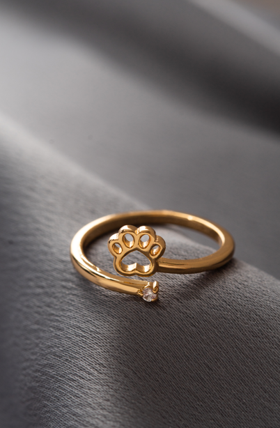 Be the first to review “Anel Regulável Patinha Cachorro Com Ponto De Luz Banhado A Ouro”
