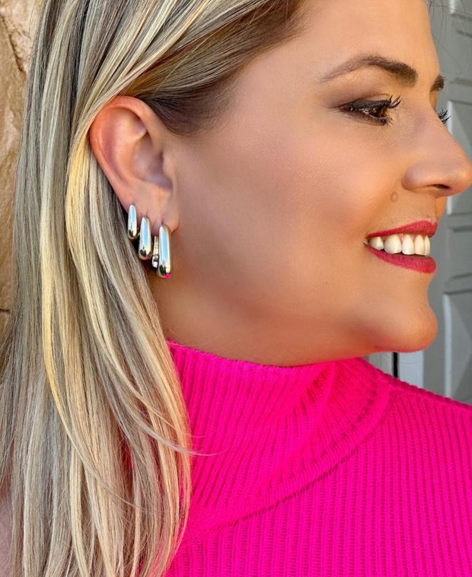 Já sabemos que argolas estão com tudo, desde mais casual até mais sofisticada, elas combinam com qualquer estilo. E com essa argola não é diferente ela traz uma delicadeza para o look e cheio de versatilidade, aposte nessa tendência e continue arrasando.