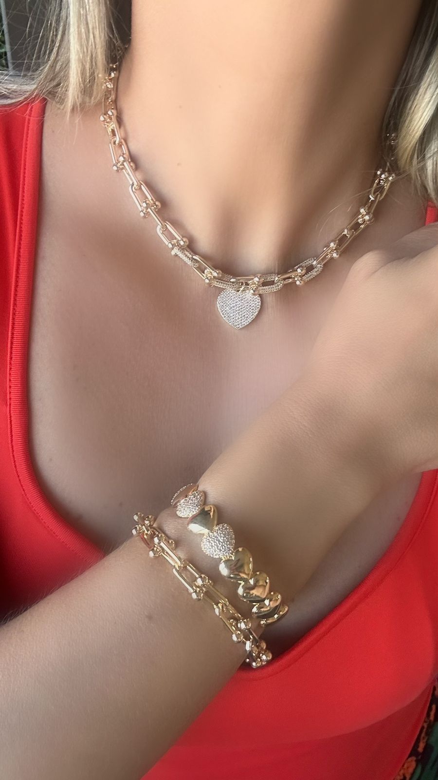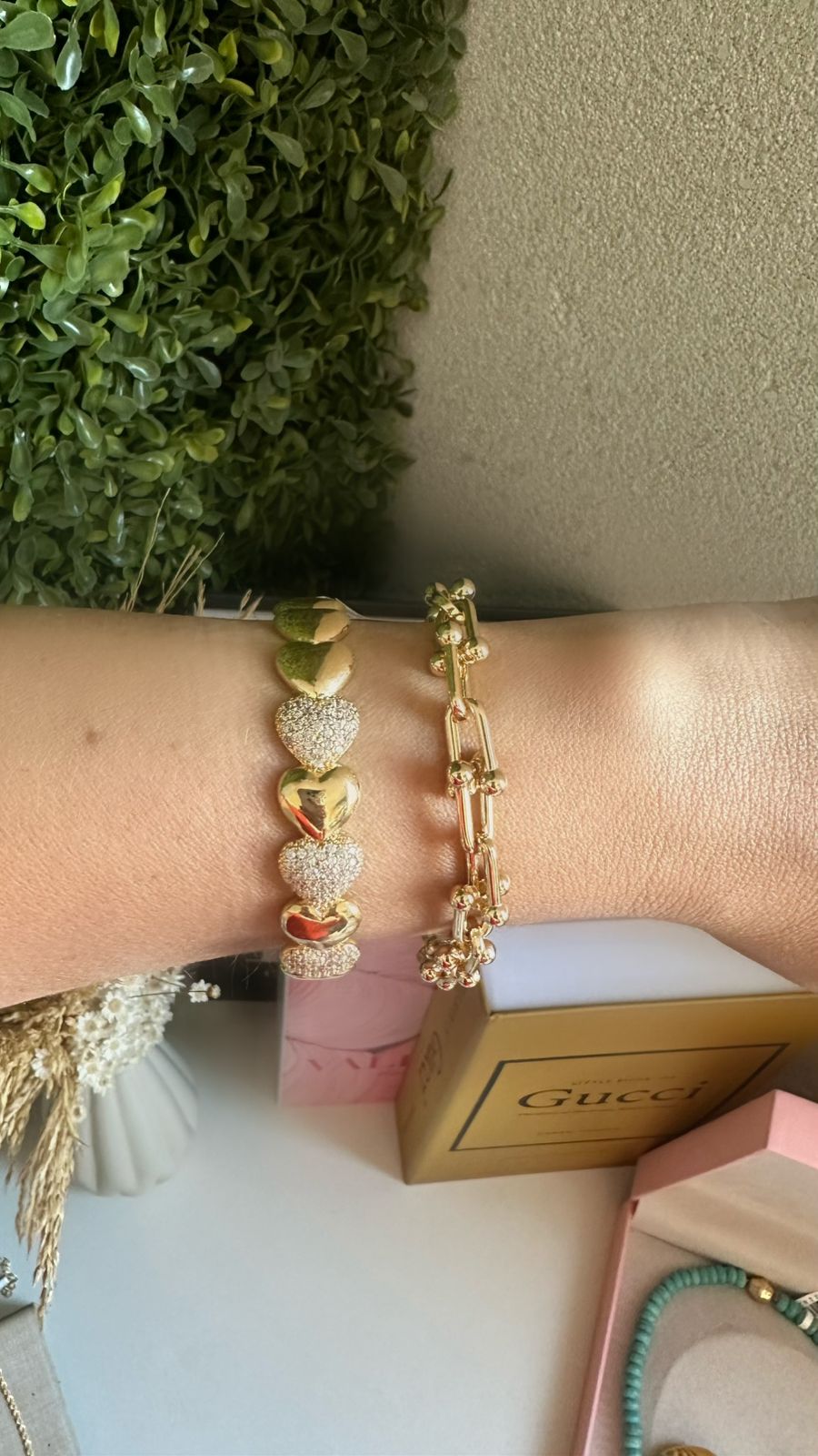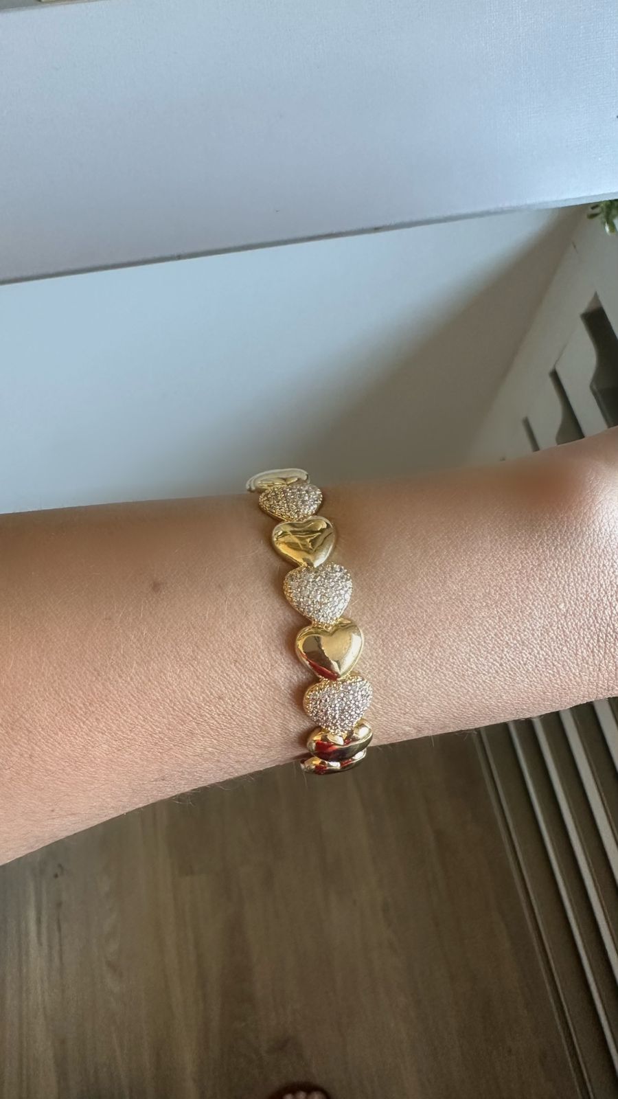 Be the first to review “Bracelete Corações Zircônia E Liso Detalhado 5MM Banhado A Ouro”