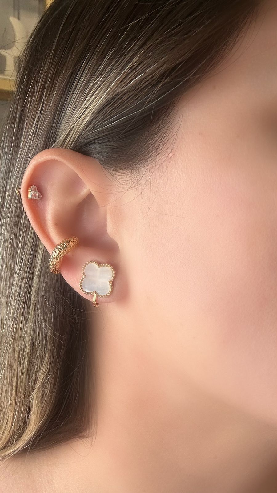 O material base consiste em uma liga metálica de cobre e zinco e recebe o banho de ouro ou ródio branco, acrescentamos também um verniz de proteção que garante uma durabilidade maior da peça. Nossas peças não possuem o níquel em sua composição e utilização uma camada antialérgica.