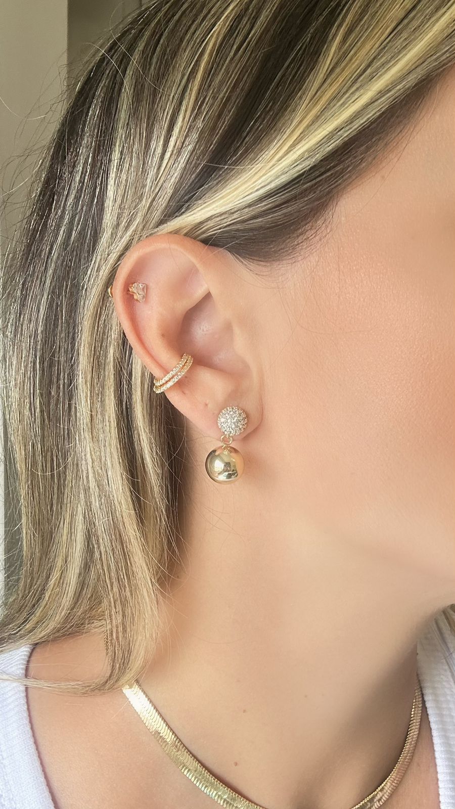 O material base consiste em uma liga metálica de cobre e zinco e recebe o banho de ouro ou ródio branco, acrescentamos também um verniz de proteção que garante uma durabilidade maior da peça. Nossas peças não possuem o níquel em sua composição e utilização uma camada antialérgica.