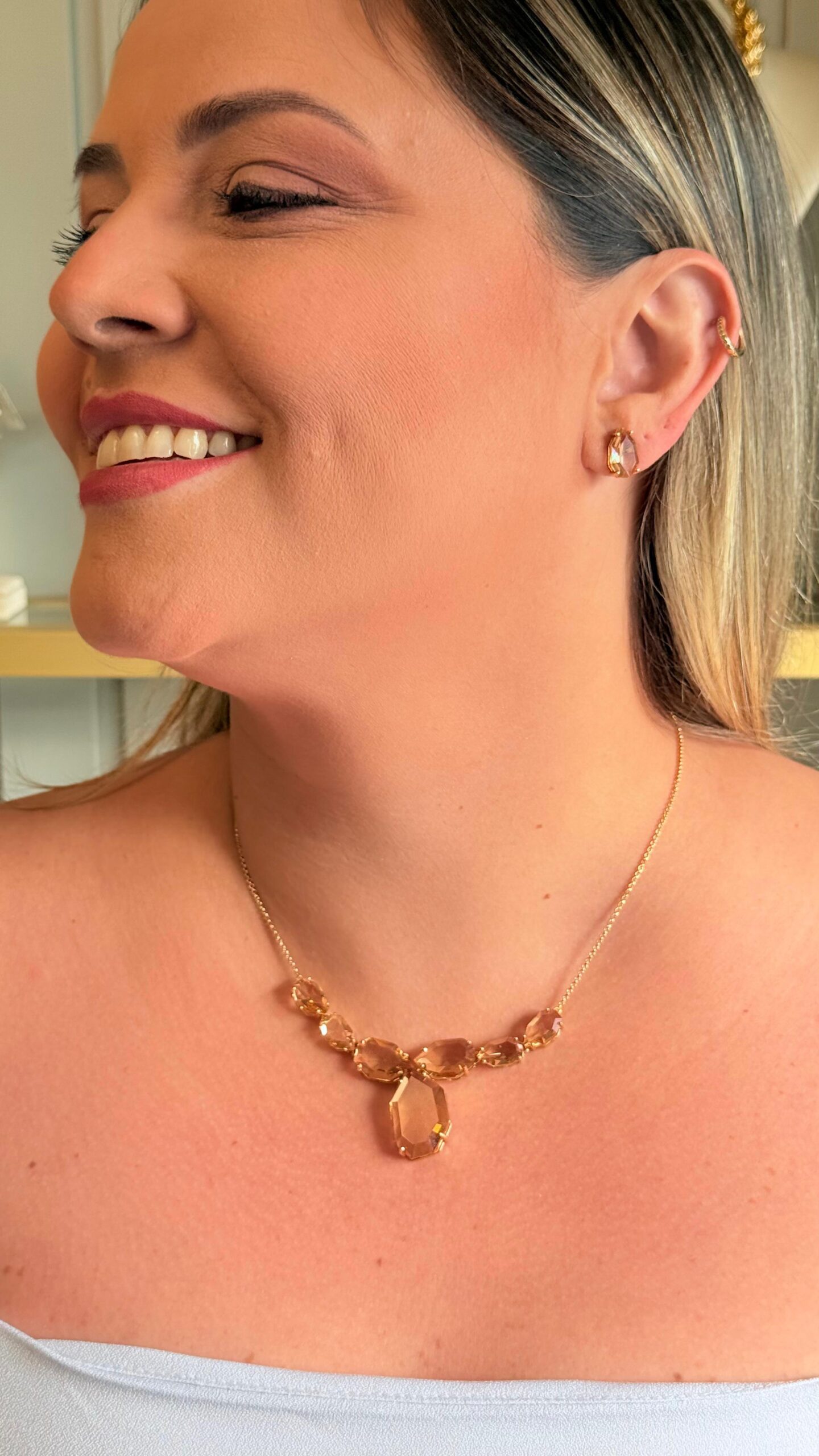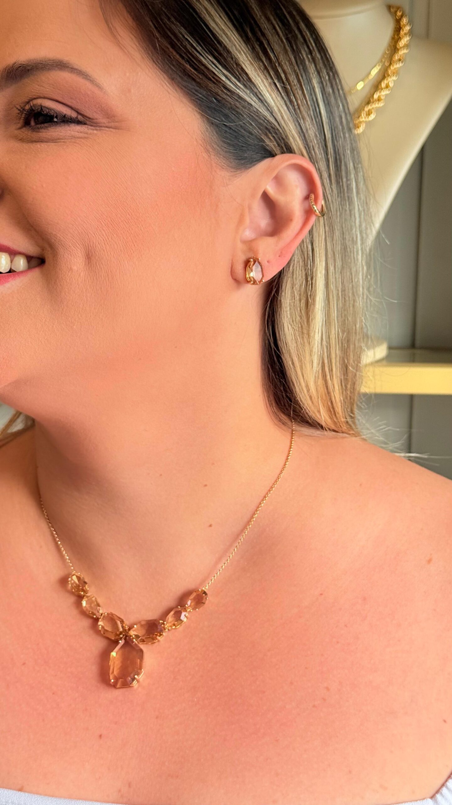 Cuidados com as semijoias: Para evitar riscos nas peças, guarde sempre em saquinhos separados, aproveite os saquinhos que enviamos as peças para conservá-las. Evite entrar em piscinas, mar ou tomar banho com as peças. O cloro, sal e produtos químicos utilizados no shampoo, por exemplo, podem contribuir para intensificação da perda de brilho. O álcool em gel e o uso de hidratante e sabonete diretamente sobre as peças podem danificá-las. O ideal é retirar as semijoias ao higienizar as mãos e colocá-las após a secagem. Não aplique perfume diretamente nas peças. O álcool e demais produtos químicos podem danificar as semijoias. Borrife o perfume na pele, espere absorver e só depois coloque as semijoias.