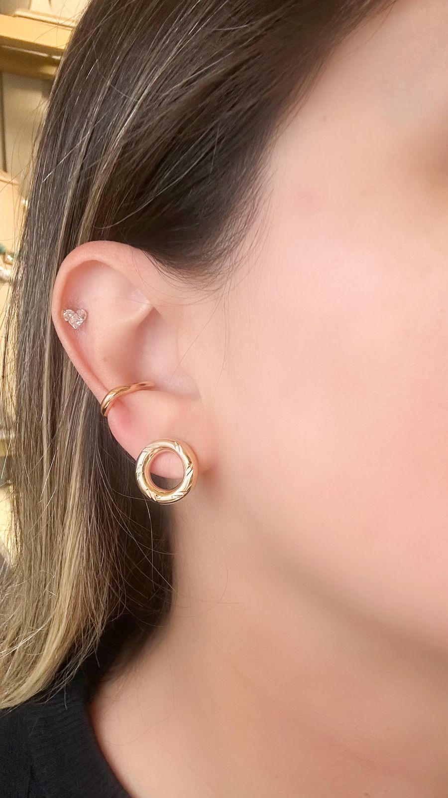 O material base consiste em uma liga metálica de cobre e zinco e recebe o banho de ouro ou ródio branco, acrescentamos também um verniz de proteção que garante uma durabilidade maior da peça. Nossas peças não possuem o níquel em sua composição e utilização uma camada antialérgica.