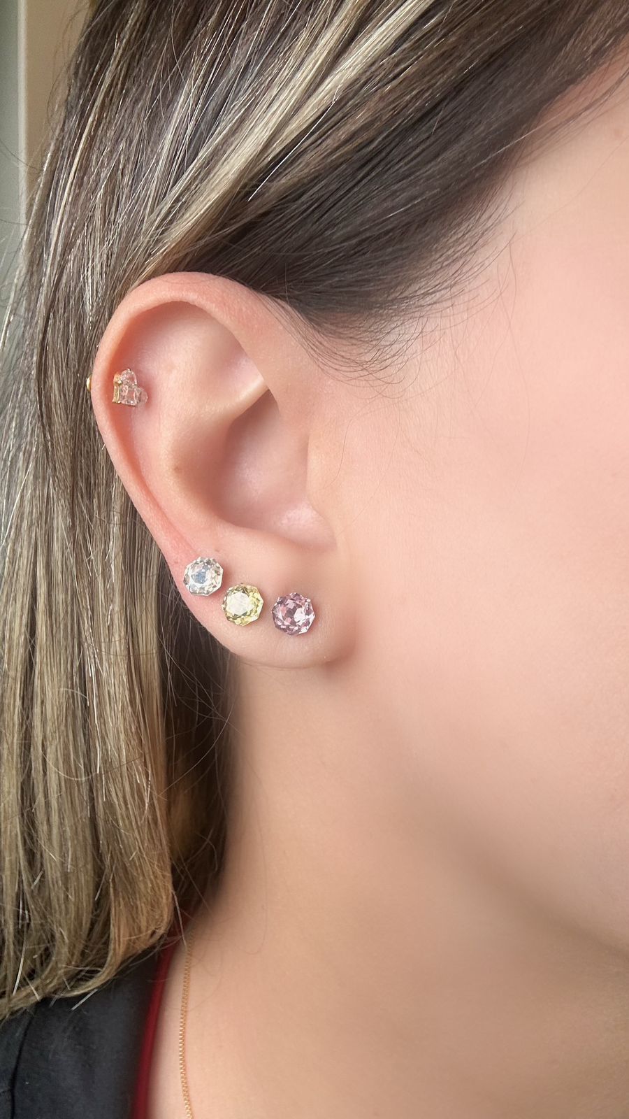 O material base consiste em uma liga metálica de cobre e zinco e recebe o banho de ouro ou ródio branco, acrescentamos também um verniz de proteção que garante uma durabilidade maior da peça. Nossas peças não possuem o níquel em sua composição e utilização uma camada antialérgica.