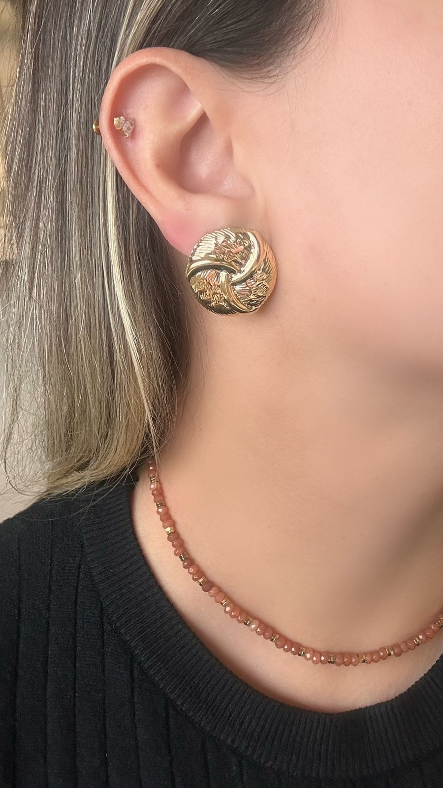 O material base consiste em uma liga metálica de cobre e zinco e recebe o banho de ouro ou ródio branco, acrescentamos também um verniz de proteção que garante uma durabilidade maior da peça. Nossas peças não possuem o níquel em sua composição e utilização uma camada antialérgica.