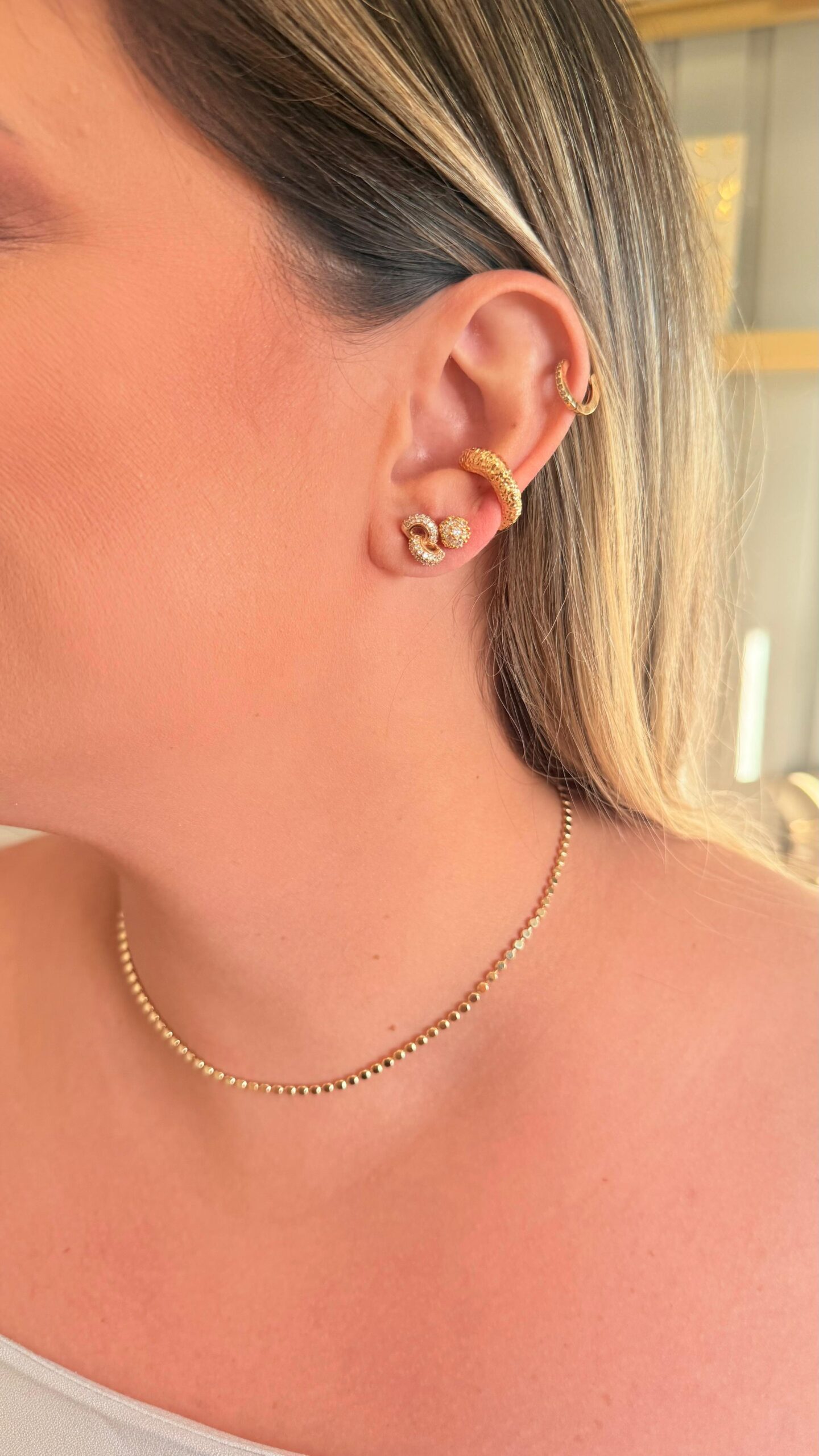 O material base consiste em uma liga metálica de cobre e zinco e recebe o banho de ouro ou ródio branco, acrescentamos também um verniz de proteção que garante uma durabilidade maior da peça. Nossas peças não possuem o níquel em sua composição e utilização uma camada antialérgica.