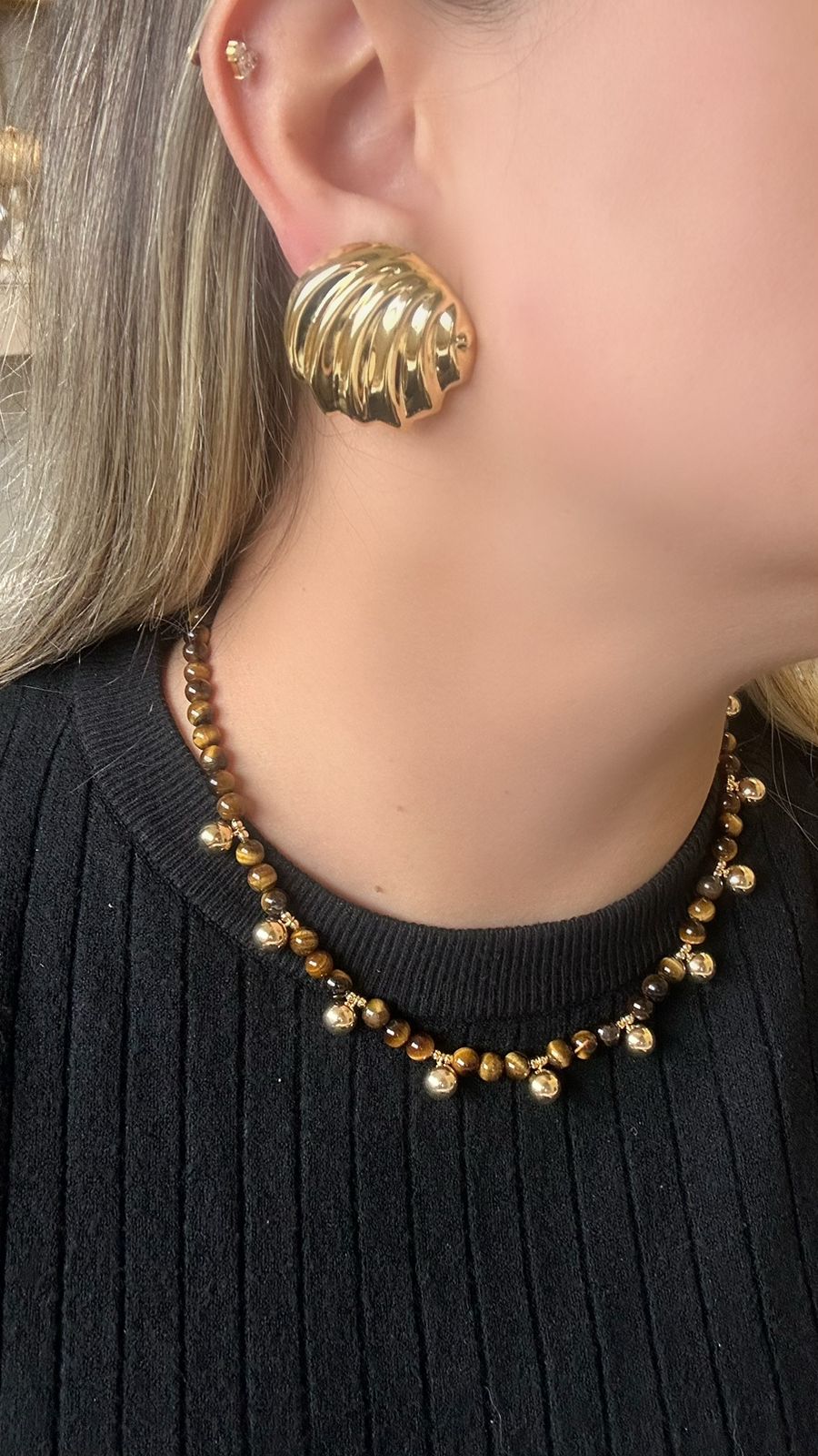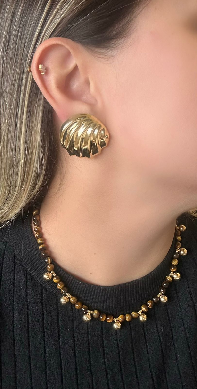 O material base consiste em uma liga metálica de cobre e zinco e recebe o banho de ouro ou ródio branco, acrescentamos também um verniz de proteção que garante uma durabilidade maior da peça. Nossas peças não possuem o níquel em sua composição e utilização uma camada antialérgica.