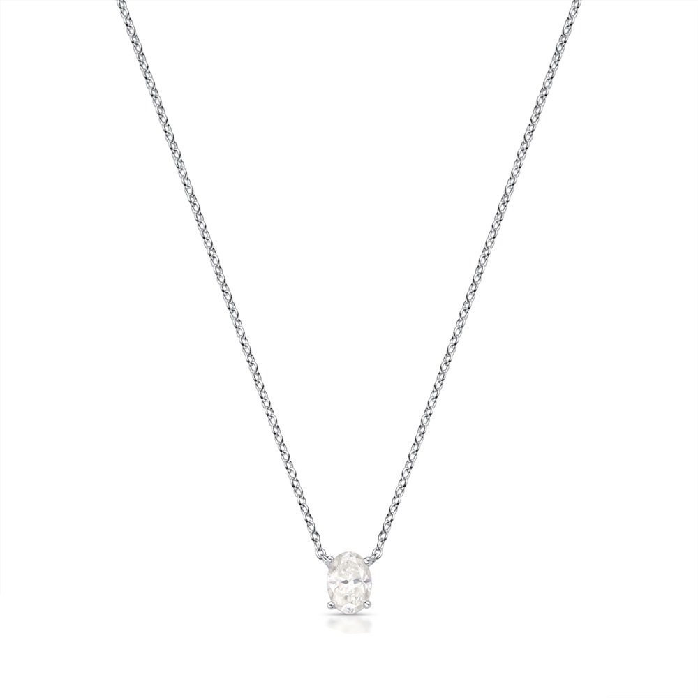 Colar em malha portuguesa com pingente redondo pedra moissanite 3mm e 2.0ct prata 925 banho de ródio.
