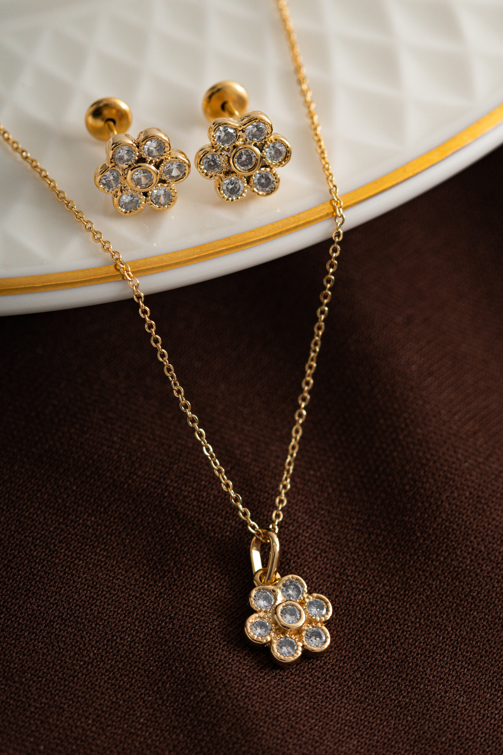 O material base consiste em uma liga metálica de cobre e zinco e recebe o banho de ouro ou ródio branco, acrescentamos também um verniz de proteção que garante uma durabilidade maior da peça. Nossas peças não possuem o níquel em sua composição e utilização uma camada antialérgica.