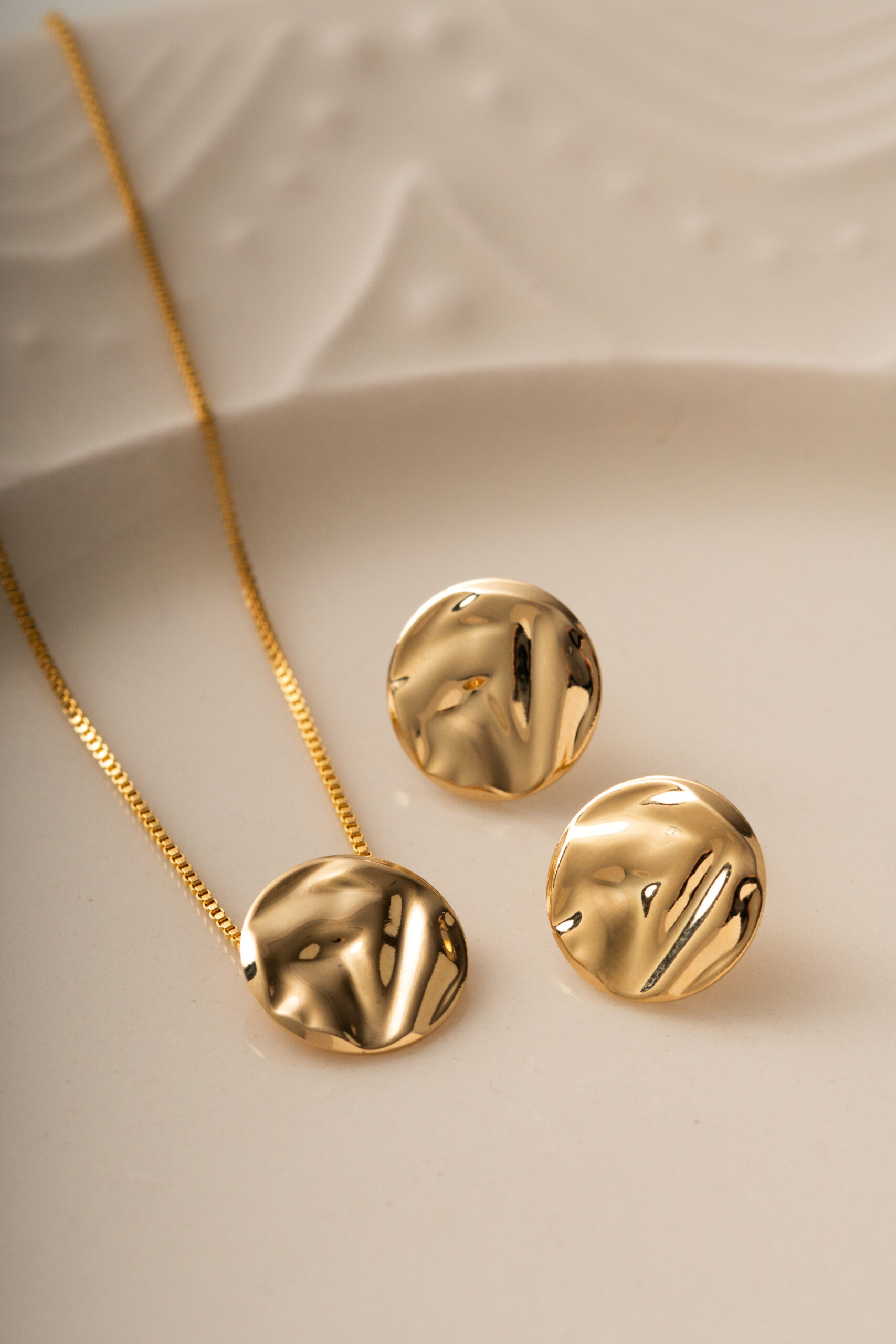 O material base consiste em uma liga metálica de cobre e zinco e recebe o banho de ouro ou ródio branco, acrescentamos também um verniz de proteção que garante uma durabilidade maior da peça. Nossas peças não possuem o níquel em sua composição e utilização uma camada antialérgica.