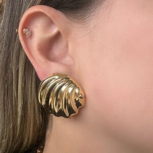 Brinco Coração Abaulado Cravejado Em Zircônia Banhado A Ouro