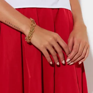 Argola Dois Em Um Lisa Com Elo Retangular Banhado A Ouro